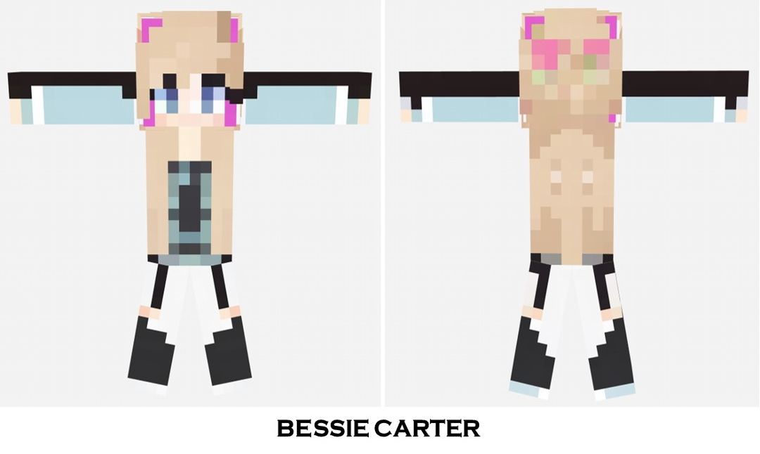 Overall, the “Bessie Carter” Minecraft skin is a testament to modern fashion, with its combination of elegant design, vibrant colors, and detailed pixel art. It is an excellent choice for players who want their character to reflect a sense of contemporary style and sophistication, standing out in the Minecraft world with a unique and fashionable presence.