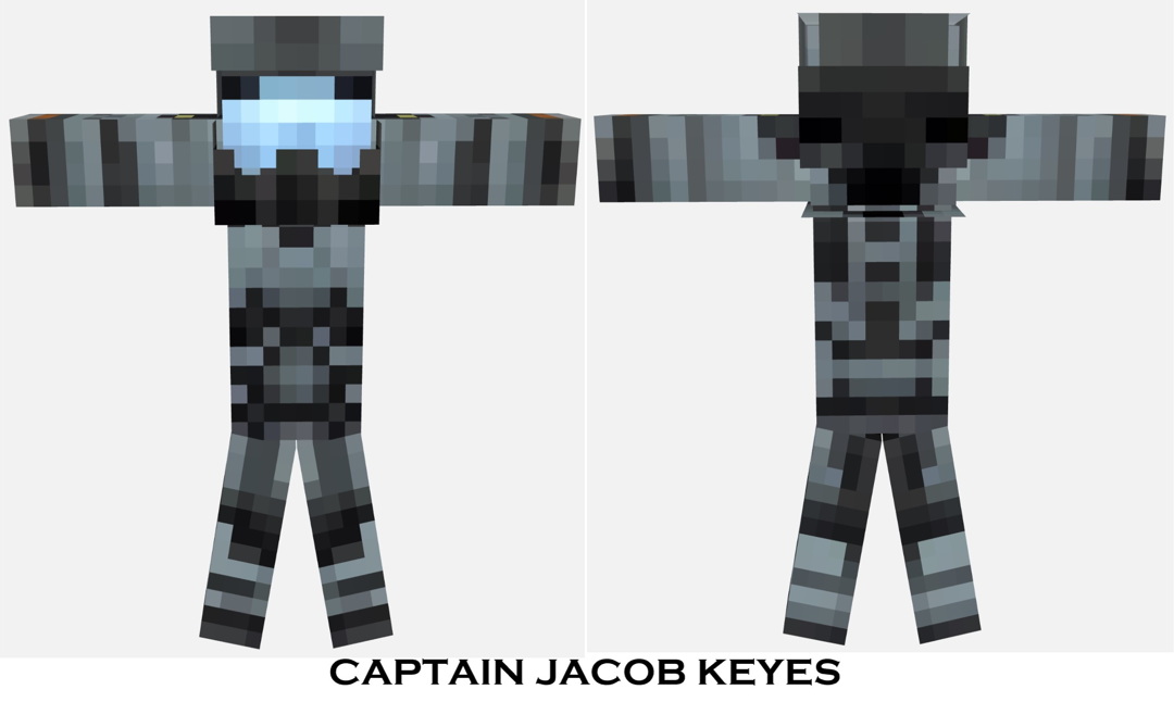 With its blend of tactical utility and sleek design, the “Captain Jacob Keyes” skin is perfect for those who aspire to embody a figure of strategic significance in their Minecraft adventures, making it a popular choice among players who appreciate a blend of style, function, and a hint of mysterious, high-tech warfare.