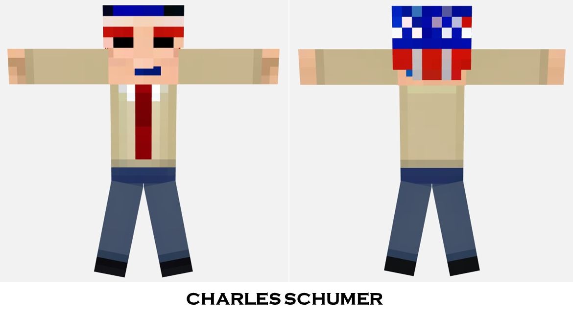 Overall, the “Charles Schumer” skin is perfect for players who want to portray a figure of authority, professionalism, and national pride in the Minecraft world. Whether you’re leading a team, participating in a virtual event, or simply exploring, this skin offers a perfect blend of style and substance, ensuring you stand out with confidence and pride.