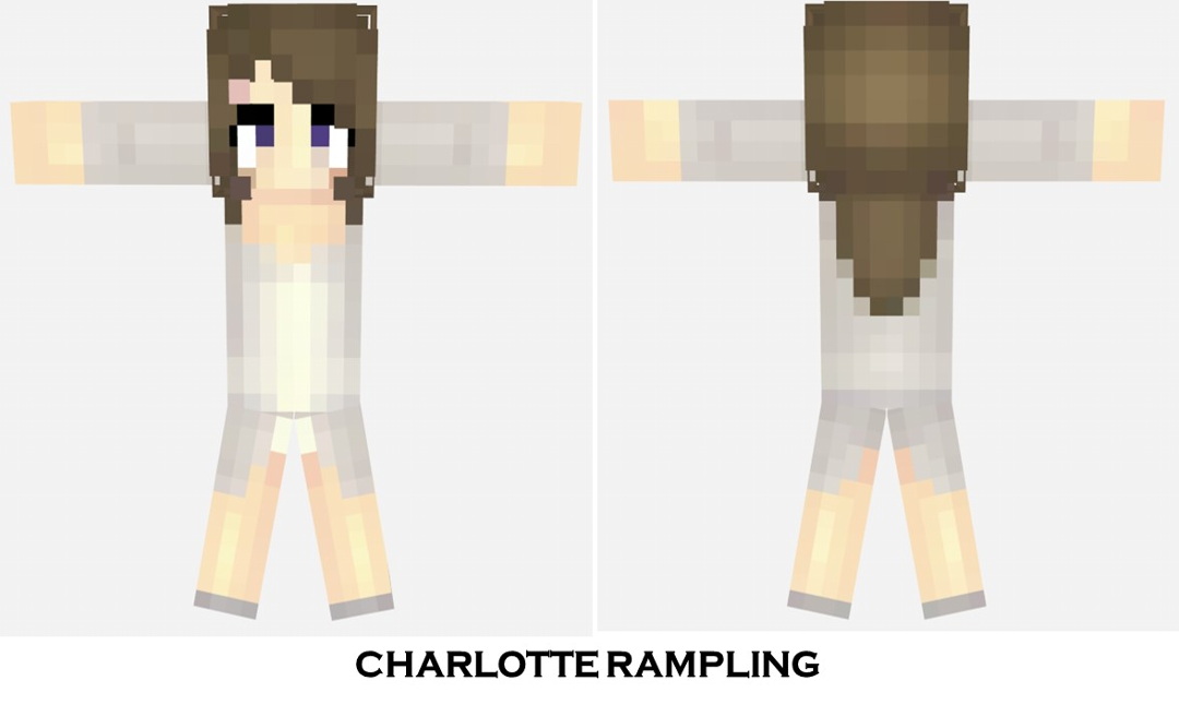 The Charlotte Rampling Minecraft skin is a meticulously designed avatar that captures the grace and elegance of the esteemed actress. The character features long, flowing brown hair that cascades down the back, adding a touch of realism and sophistication to the blocky aesthetic of Minecraft. The hairstyle is simple yet effective, ensuring that it stands out without overwhelming the overall design.