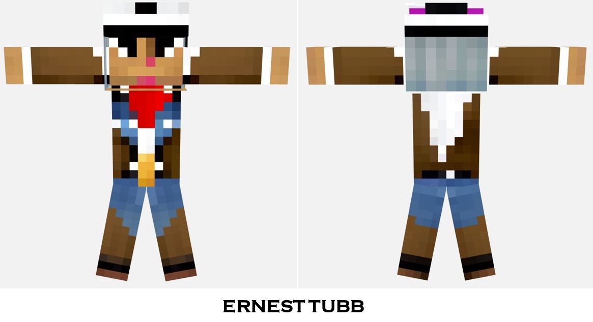 Overall, the “Ernest Tubb” skin is perfect for players who wish to embody a figure of charm, style, and liveliness in the Minecraft world. Whether you’re exploring vast landscapes, engaging with other players, or leading a group on an adventure, this skin ensures you do so with a distinct and memorable presence. The combination of vibrant colors, classic elements, and detailed design makes this skin a standout choice for any Minecraft enthusiast.