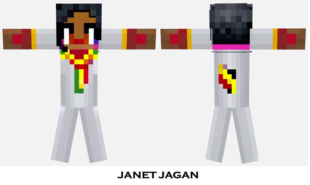 Overall, the “Janet Jagan” skin is a testament to the careful blending of simplicity and vibrancy, making it a perfect choice for players who wish to have a unique and culturally rich avatar in Minecraft. The attention to detail and the thoughtful use of colors make this skin not just a visual delight but also a meaningful representation of cultural pride and elegance.