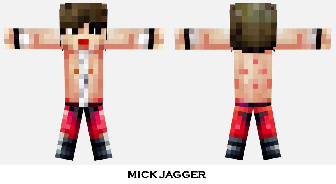 The “Mick Jagger” Minecraft skin is perfect for players who want their avatar to exude the rebellious and energetic spirit of a legendary musician. Whether you’re leading a virtual concert, exploring the Minecraft world, or simply looking to stand out with a unique and stylish skin, this design offers a perfect blend of personality and flair. The combination of the shirtless torso, striking red pants, and expressive facial features ensures that this character will capture the attention and admiration of fellow players, making it an excellent choice for fans of rock and roll.